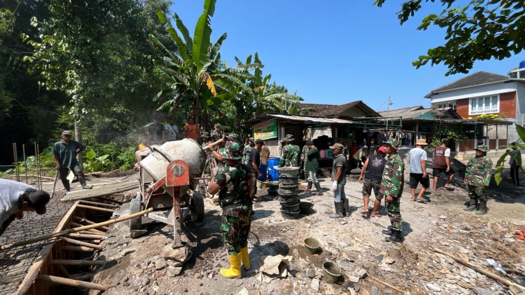 Bantul – Babinsa Kalurahan Trirenggo melaksanakan kegiatan pengecoran footplate pembangunan Jembatan Garuda di Dusun Manding RT 02, Trirenggo, Bantul. Kegiatan tersebut dihadiri oleh Danramil 01 Bantul Mayor Caj (K) Sri Mangestu, MA.A, Md, Pasiter Kodim 0729 Bantul Kapten Inf Sugeng, serta anggota Kodim 0729 Bantul dan Koramil jajaran. Minggu, (5/4/2026).