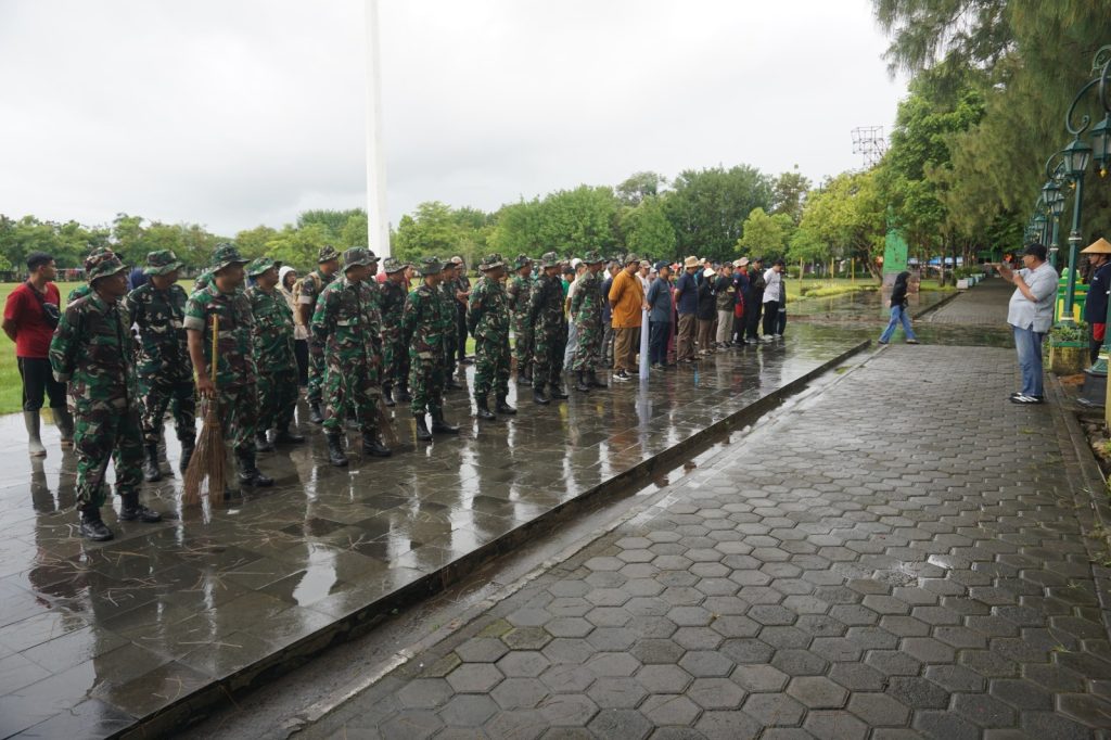 KULON PROGO. Kodim 0731/Kulon Progo bersama Pemkab dan Petugas Kebersihan Kulon Progo, melaksanakan apel dilanjutkan korve dalam rangka menindaklanjuti arahan Presiden Republik Indonesia, di Seputaran Alun Alun Wates, dipimpin Bupati Kulon Progo Dr R Agung Setyawan, S.T., M.Sc., M.M., Jumat (27/2/2026).