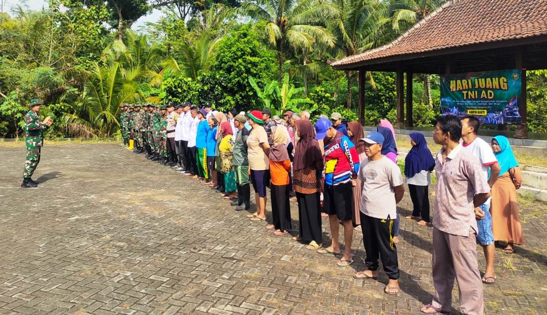 Kapten Inf Nadya menyampaikan, pagi hari ini kita akan melaksanakan karya bakti dalam rangka persiapan Upacara Serah Terima Etape Peleton Beranting Yudha Wastu Pramuka Jaya Hari Juang TNI AD Tahun 2025 di Embung Krapyak, Kalurahan Banjaroyo, Kapanewon Kalibawang. Kita siapkan tempat/lapangan yang akan digunakan untuk upacara serah terima dan sarana lain yang dibutuhkan agar kegiatan dapat berjalan dengan lancar dan aman. Laksanakan karya bakti ini dengan penuh semangat dan ikhlas, kita maksimalkan, agar pelaksanaan kegiatan upacara serah terima besok dapat berjalan lancar dan semoga apa yang kita kerjakan menjadi amal ibadah bagi kita semua, pungkasnya.Kegiatan karya bakti dilaksanakan dalam rangka mendukung Peringatan Hari Juang TNI AD Tahun 2025 dan menyambut Peleton Beranting Yudha Wastu Pramuka Jaya, yang akan melaksanakan upacara serah terima di wilayah Kalurahan Banjaroyo, Kapanewon Kalibawang, Kabupaten Kulon Progo.