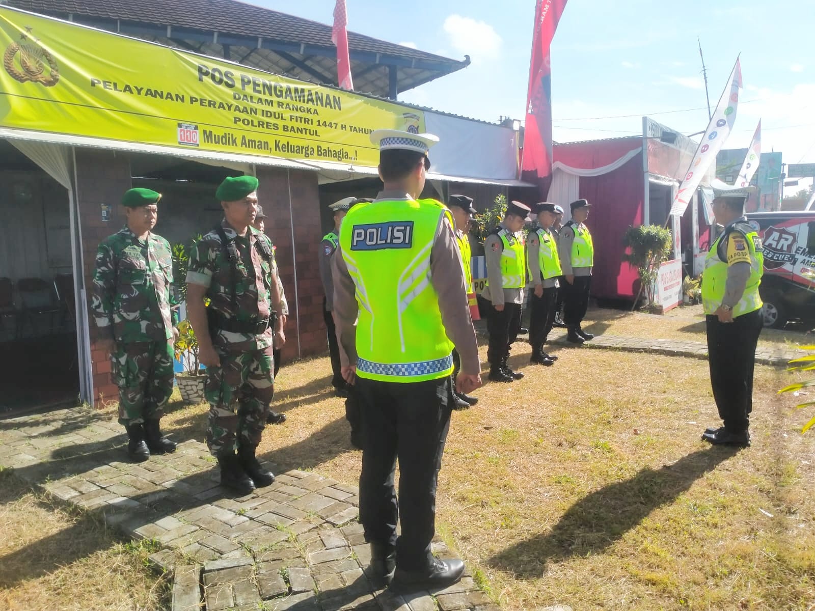 Bantul – anggota Koramil 02/Sedayu melaksanakan pengamanan dan pemantauan arus mudik Lebaran di Pos PAM Klangon, Kalurahan Argosari, Kapanewon Sedayu, Kabupaten Bantul. Kegiatan ini melibatkan personel gabungan yang terdiri dari anggota TNI, anggota POLRI, anggota Brimob, dan anggota Senkom. Rabu, (19/3/2026).