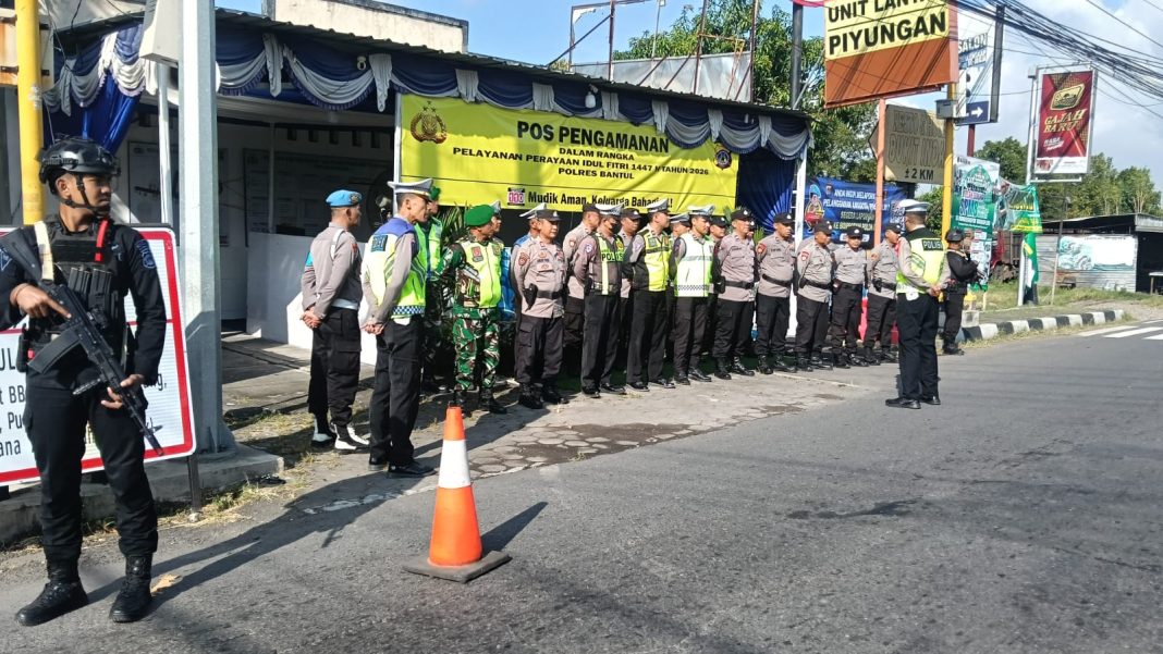Bantul – anggota Koramil 08/Piyungan melaksanakan kegiatan pengamanan dan pemantauan arus mudik Lebaran di Pos PAM Lantas Piyungan, Kapanewon Piyungan, Kabupaten Bantul. Kegiatan ini melibatkan personel gabungan yang terdiri dari anggota TNI, anggota POLRI, dan anggota Brimob. Kamis, (19/3/2026).