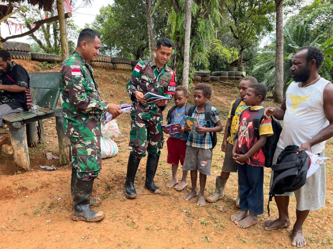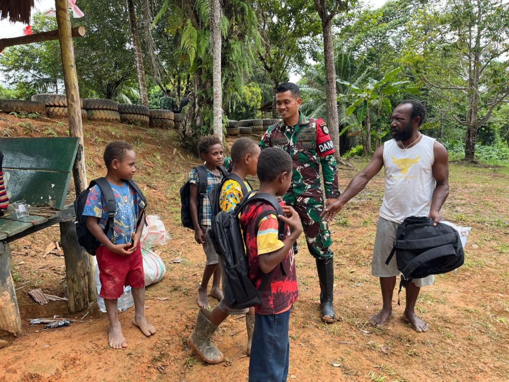 Boven Digoel, Papua Selatan – Satuan Tugas (Satgas) Yonif 403/WP melalui Pos KM 53 menggelar aksi sosial dengan membagikan bantuan berupa baju sekolah dan perlengkapan sekolah kepada warga Kampung Kanggup RT 04, Distrik Sesnuk, Kabupaten Boven Digoel, Papua Selatan, pada hari Rabu (24/09/2025). Kegiatan ini dipimpin langsung oleh Danpos KM 53 Satgas Yonif 403/WP,