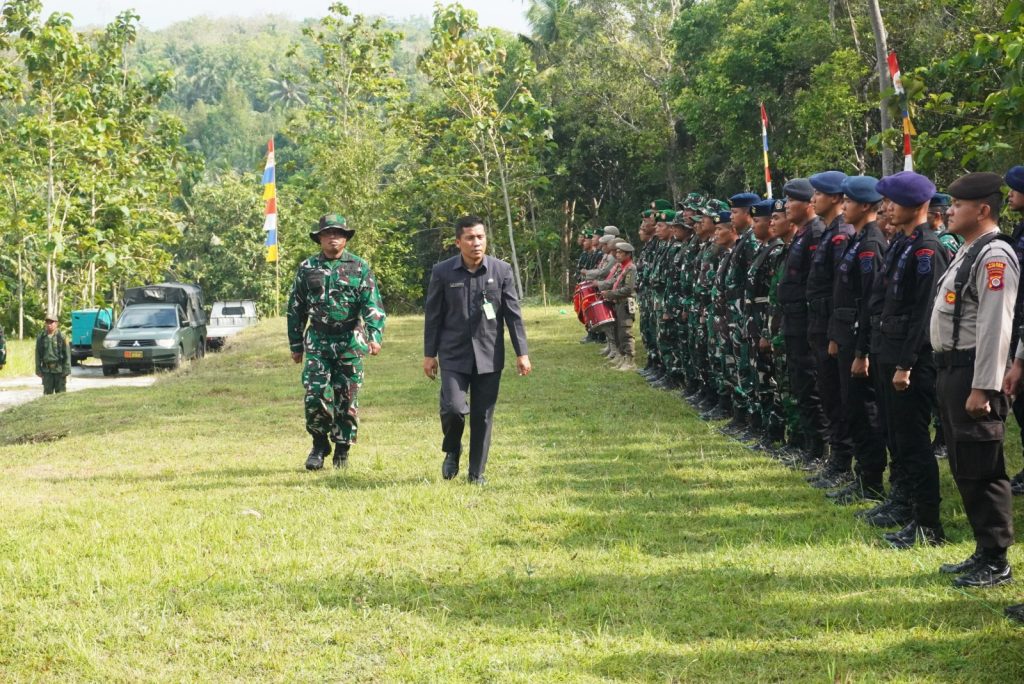 Selesai upacara dilanjutkan peninjauan lokasi kegiatan TMMD dan pengecoran perdana secara simbolis oleh Forkopimda dan Pejabat yang hadir pada acara tersebut.